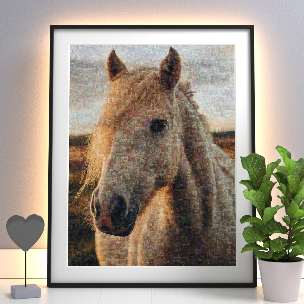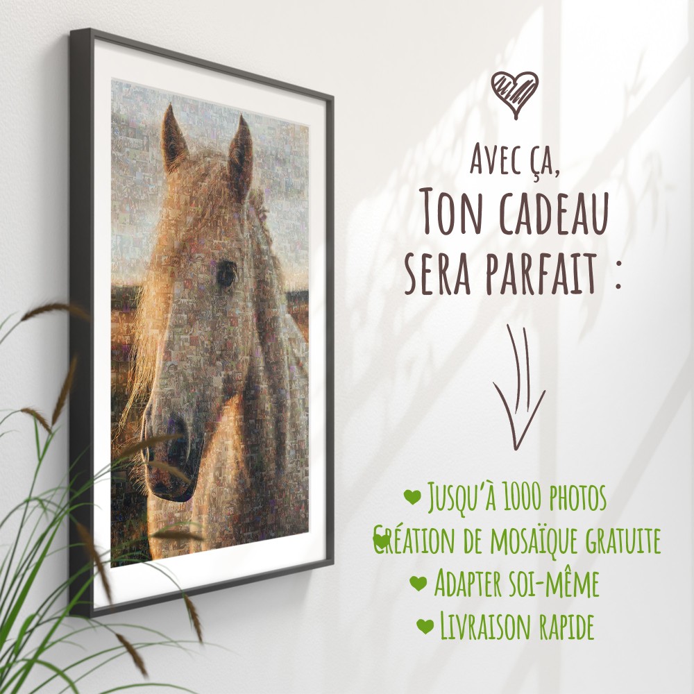 Une mosaïque photo photo de ton cheval n'est pas seulement un cadeau personnalisé, mais aussi un moment émotionnel fort. Il préserve les plus beaux souvenirs de manière unique et te permet de les revivre encore et encore.