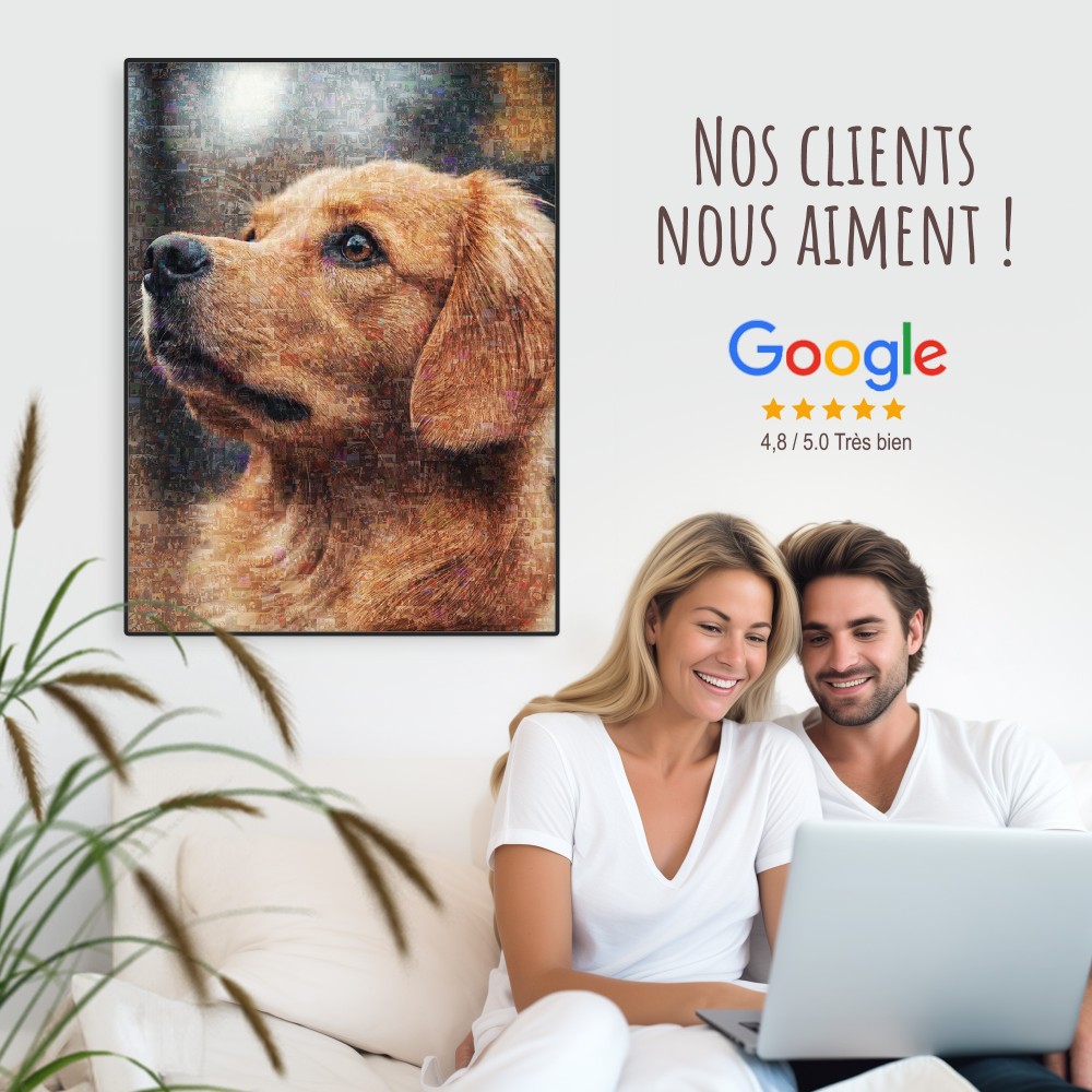 Une mosaïque photo photo avec des photos de chien n'est pas seulement un cadeau personnalisé, mais aussi un moment émotionnel fort. Il préserve les plus beaux souvenirs de ton compagnon à quatre pattes de manière unique et te permet de les revivre encore et encore.