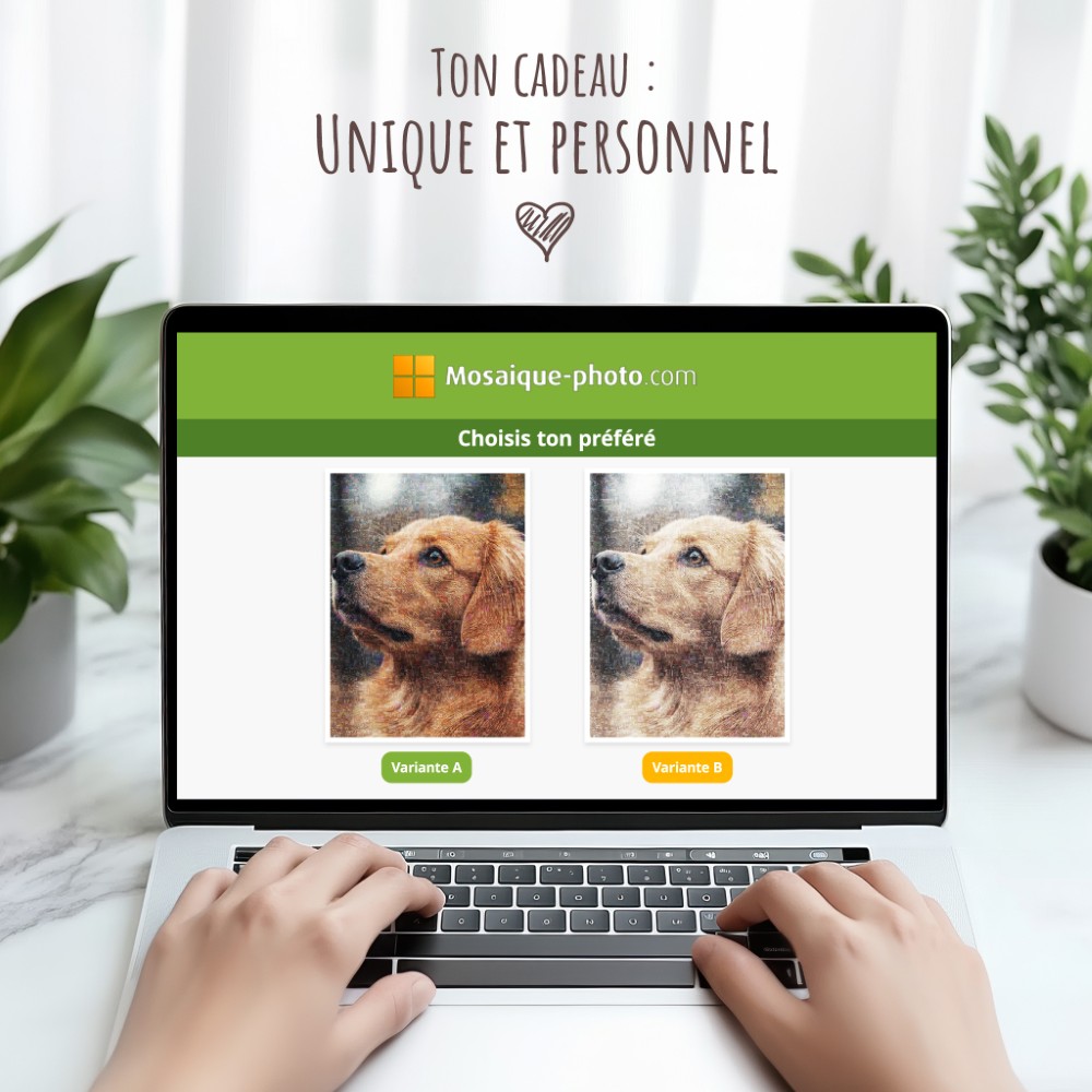 Si vous souhaitez rester flexible, vous pouvez acheter le fichier numérique de votre mosaïque photo. Le grand avantage ? Vous pouvez le télécharger immédiatement et l’offrir sans attendre. Quel que soit le matériau choisi, votre mosaïque photo sera toujours réalisée avec une qualité optimale !